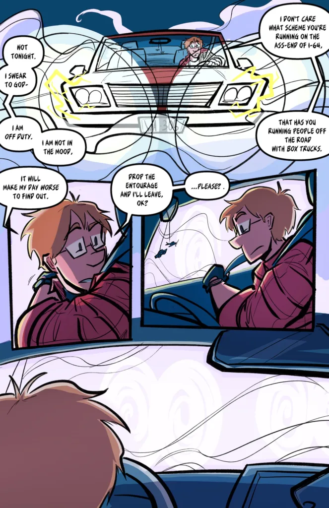 Chapter 4, Page 18 by cAPSLOCK on 10th October 2024 at 12:01 am Chapter: Chapter 4 was in another country for a sec! Now back in the US, also enjoying the american highways. 1 Comment